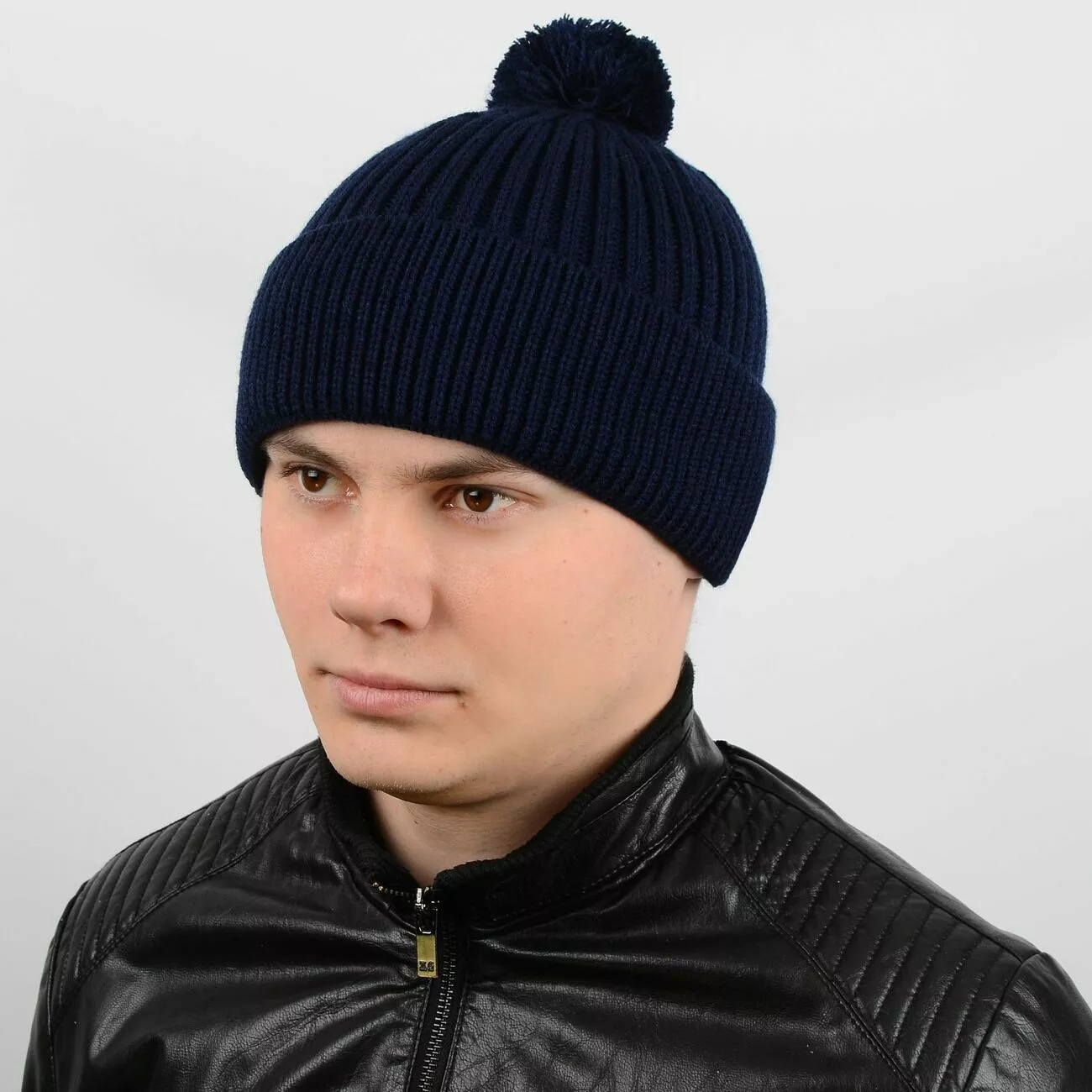 Классическая мужская вязаная шапка с ниточным помпоном - отлично