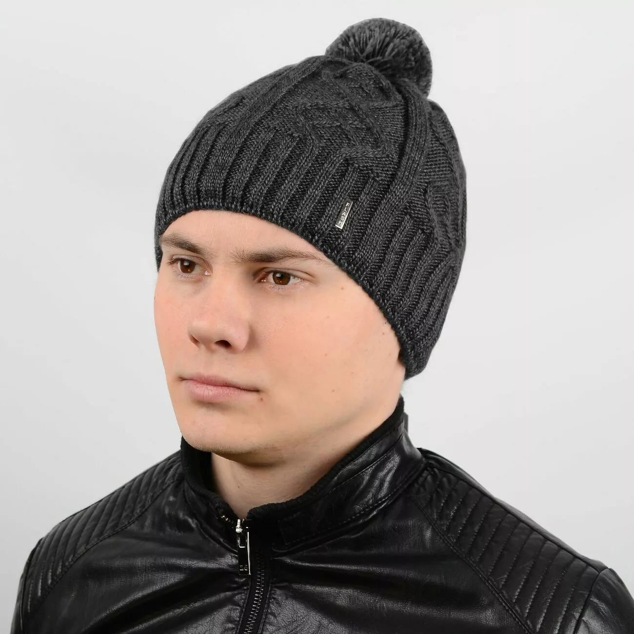 Стильная мужская вязаная шапка с ниточным помпоном - отлично