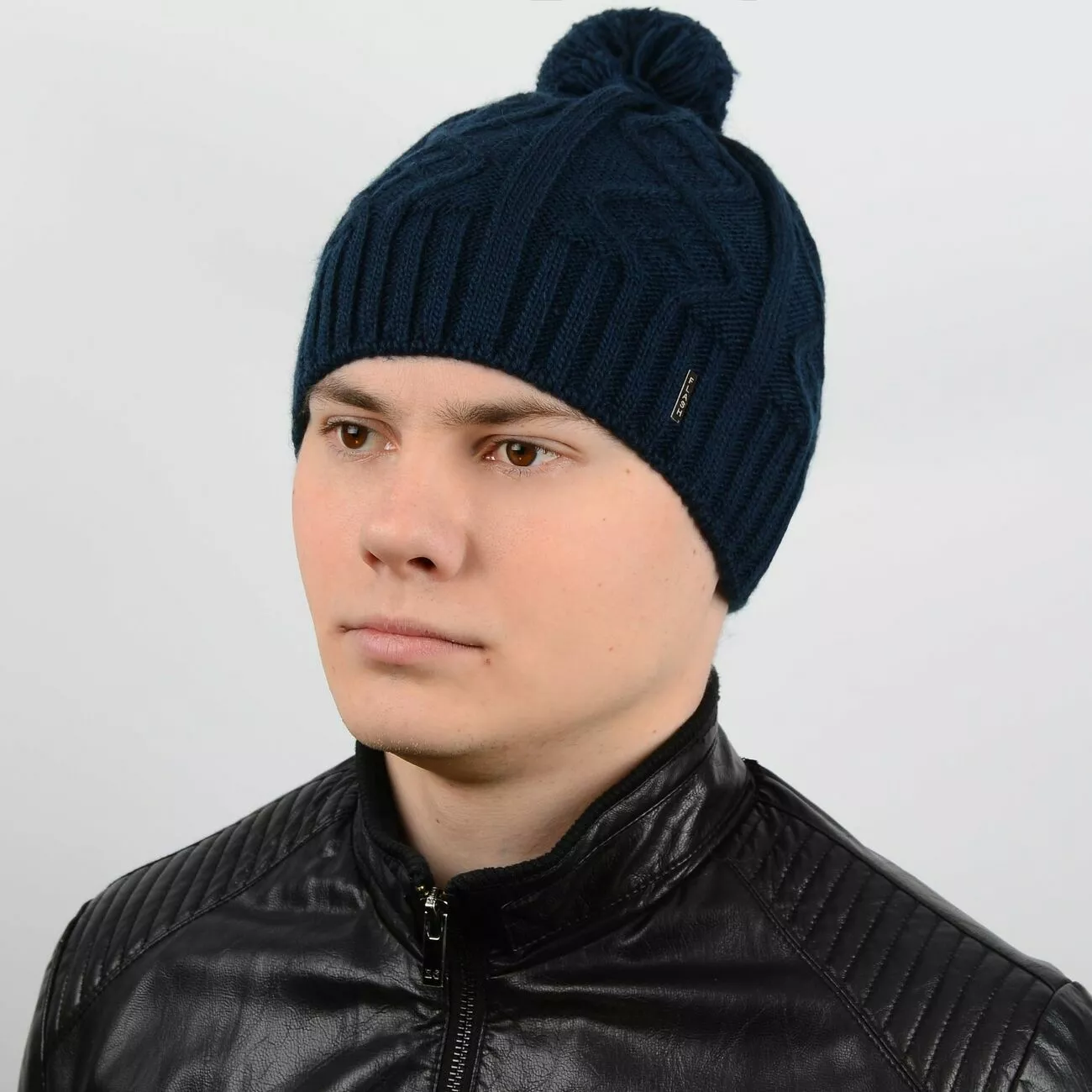 Стильная мужская вязаная шапка с ниточным помпоном - отлично