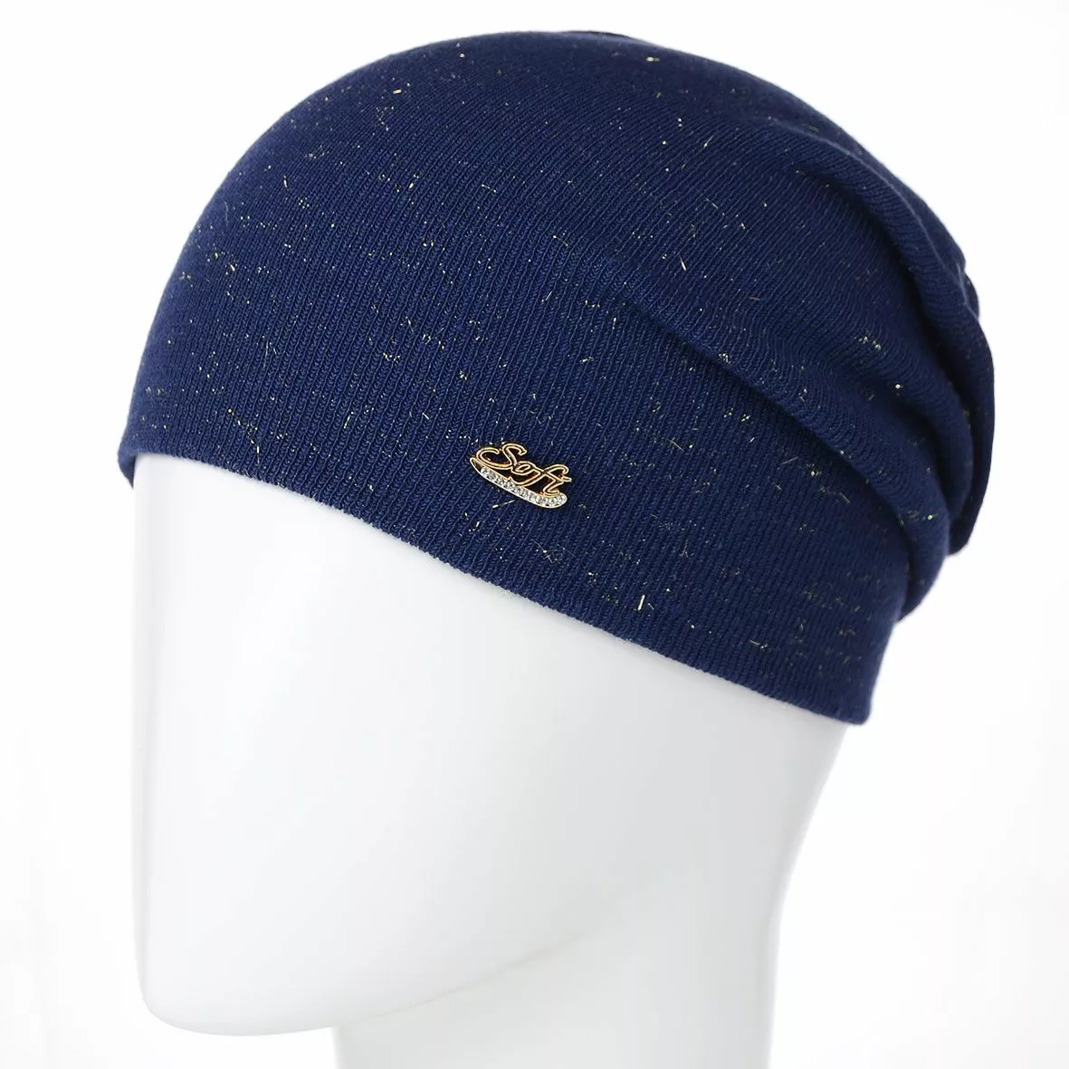 Стильная и комфортная вязаная с вплетениями люрекса шапка подходит
