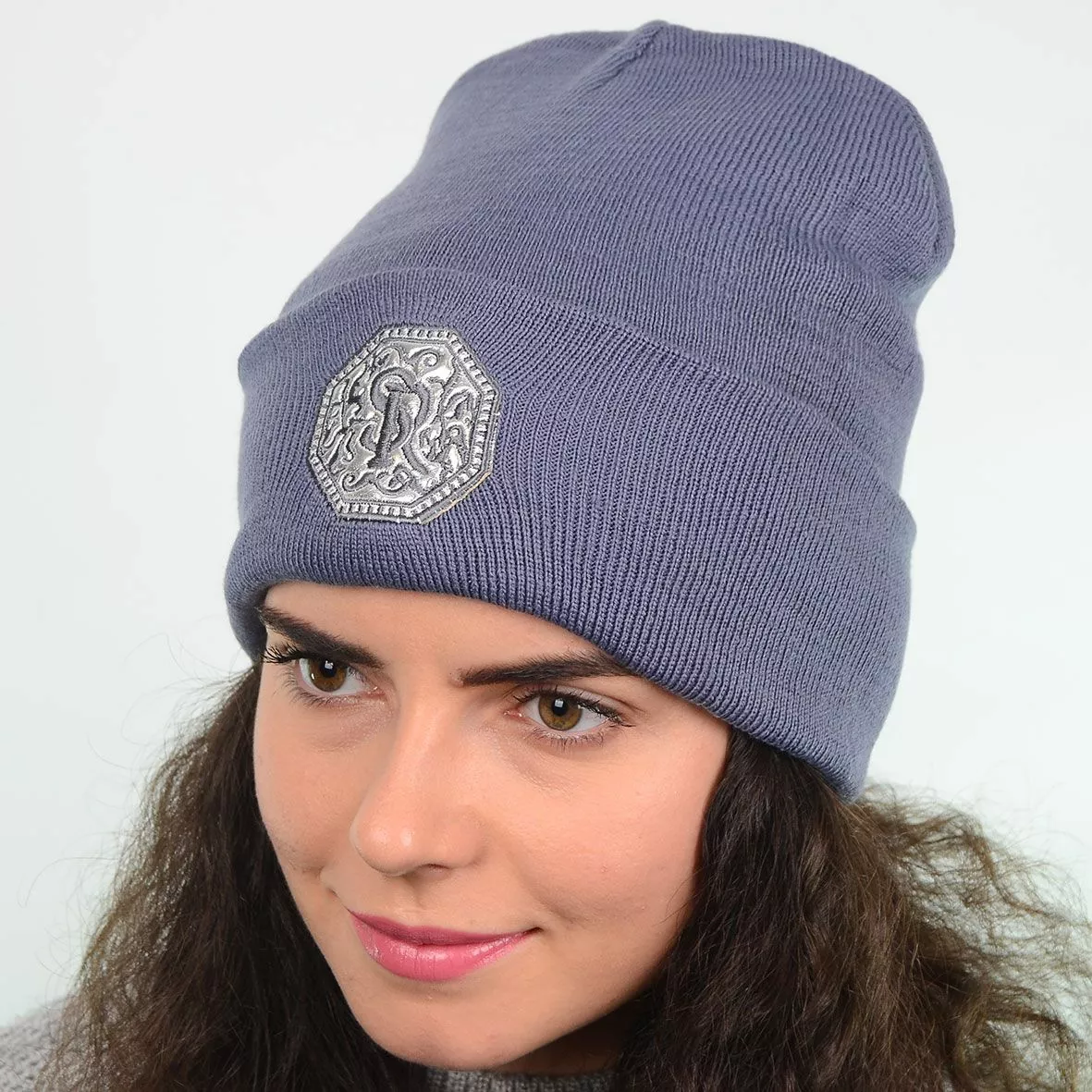 Шапка L19027 серо-синий