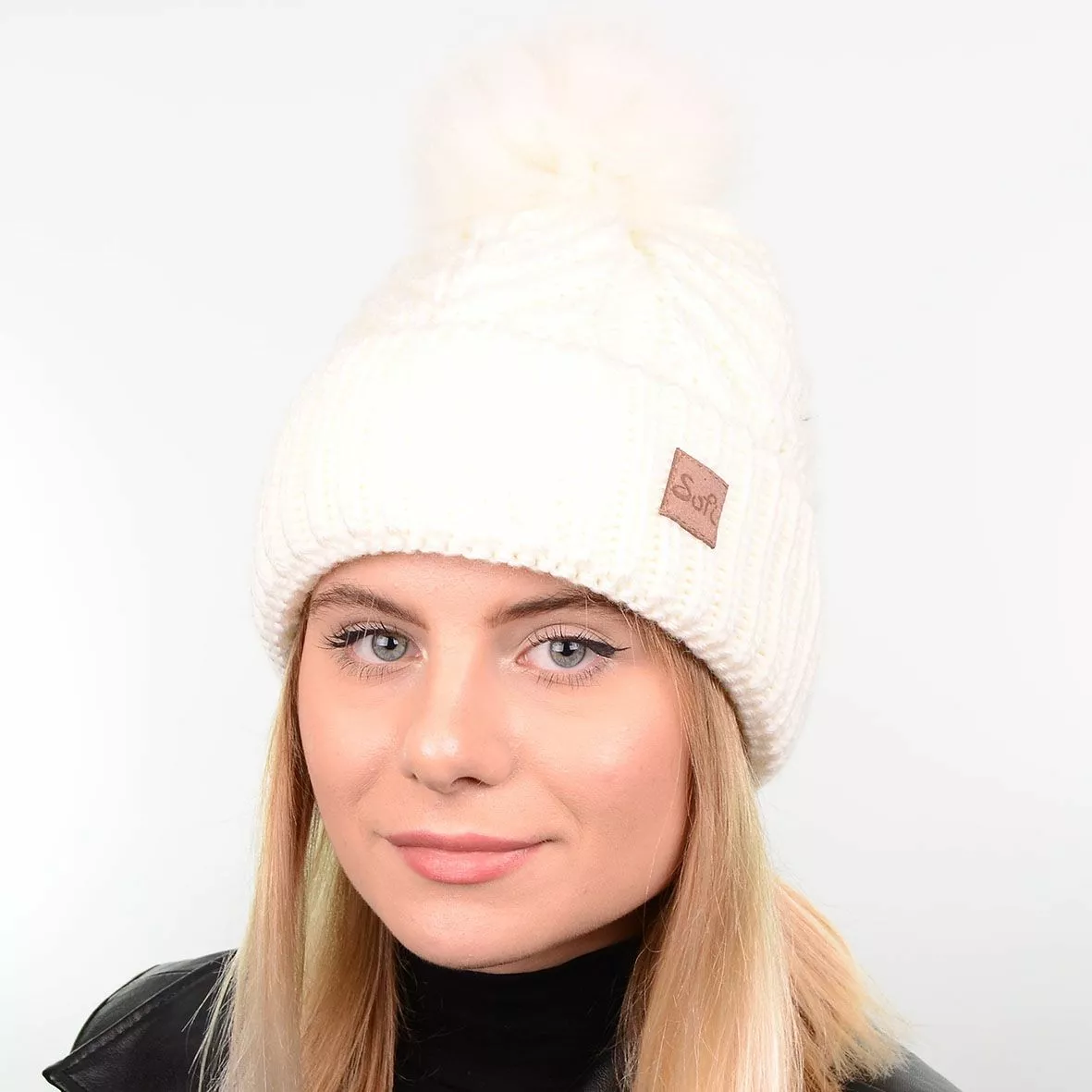 Модная зимняя шапка с натуральным меховым помпоном - смотрится