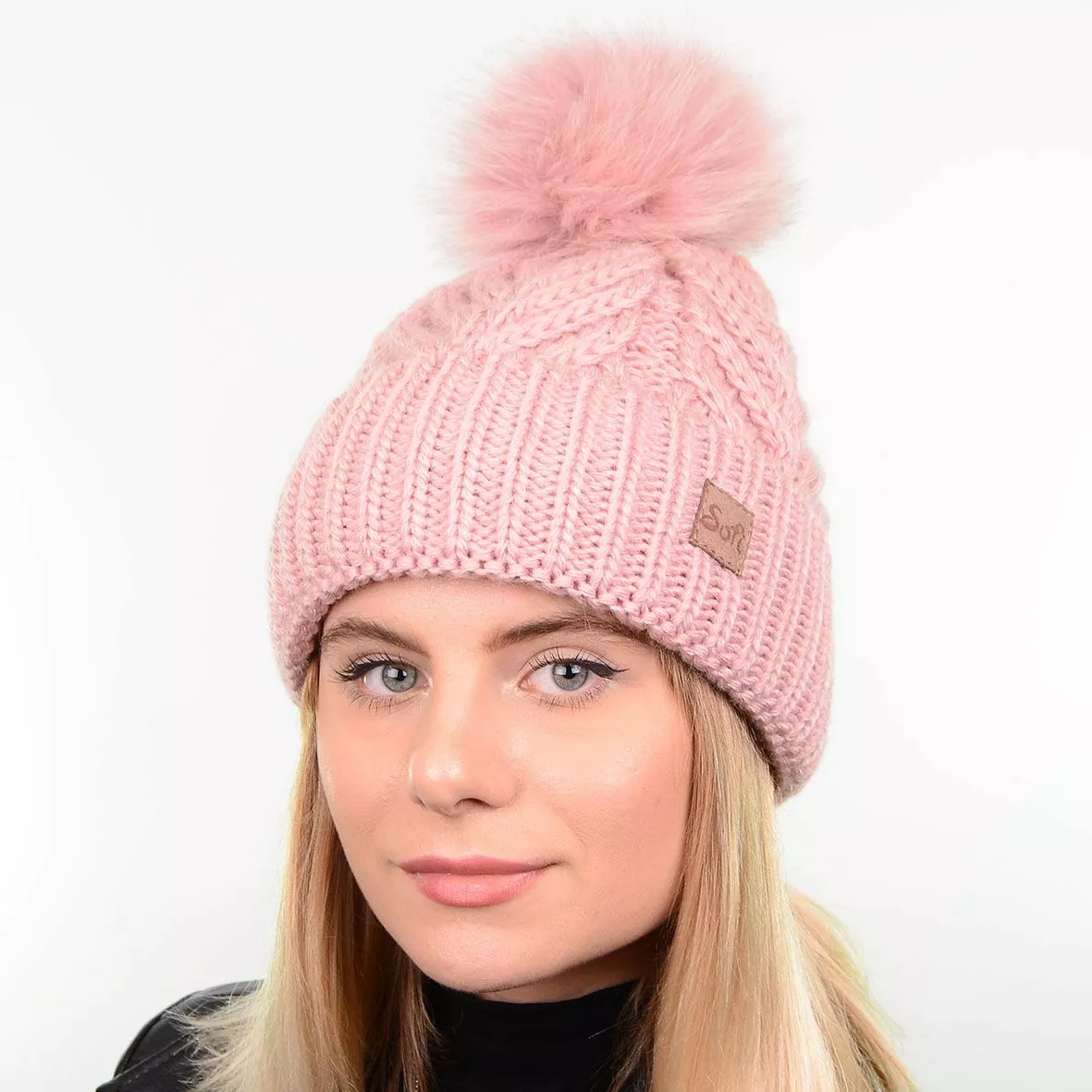 Модная зимняя шапка с натуральным меховым помпоном - смотрится