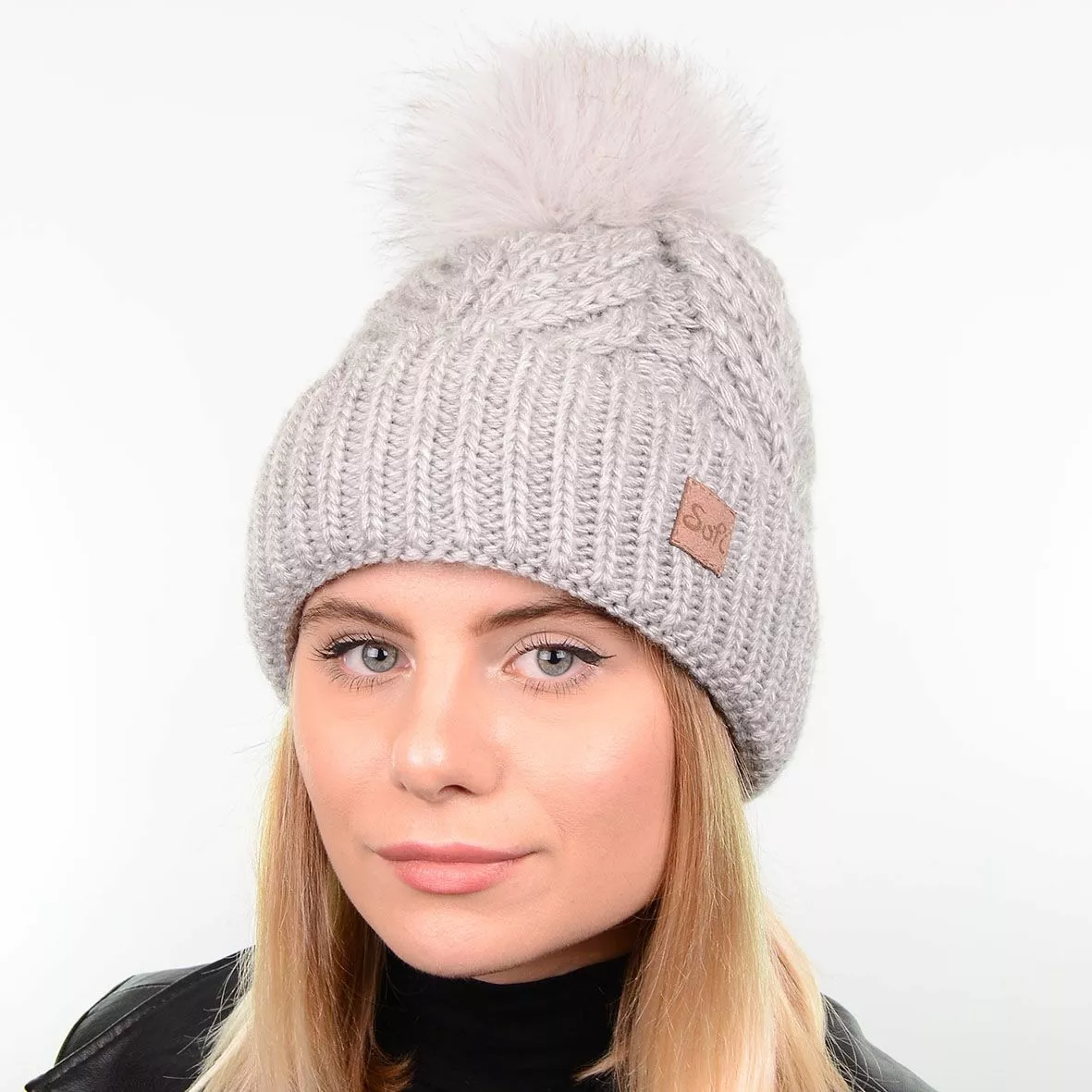Модная зимняя шапка с натуральным меховым помпоном - смотрится