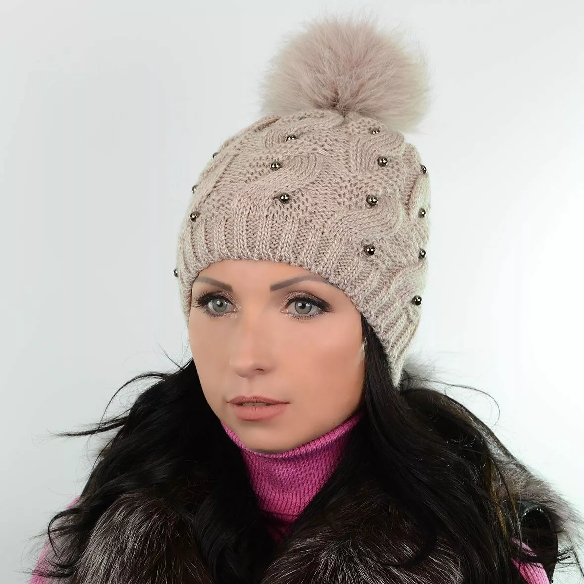 Зимняя шапка с меховым помпоном - смотрится красиво и стильно.