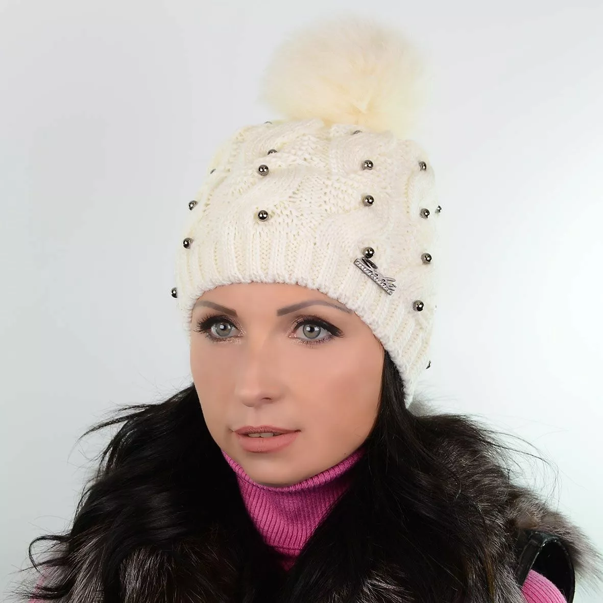 Зимняя шапка с меховым помпоном - смотрится красиво и стильно.