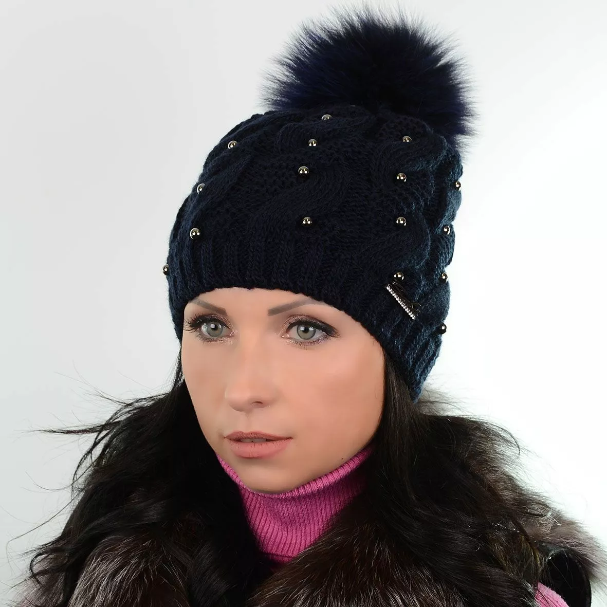 Зимняя шапка с меховым помпоном - смотрится красиво и стильно.