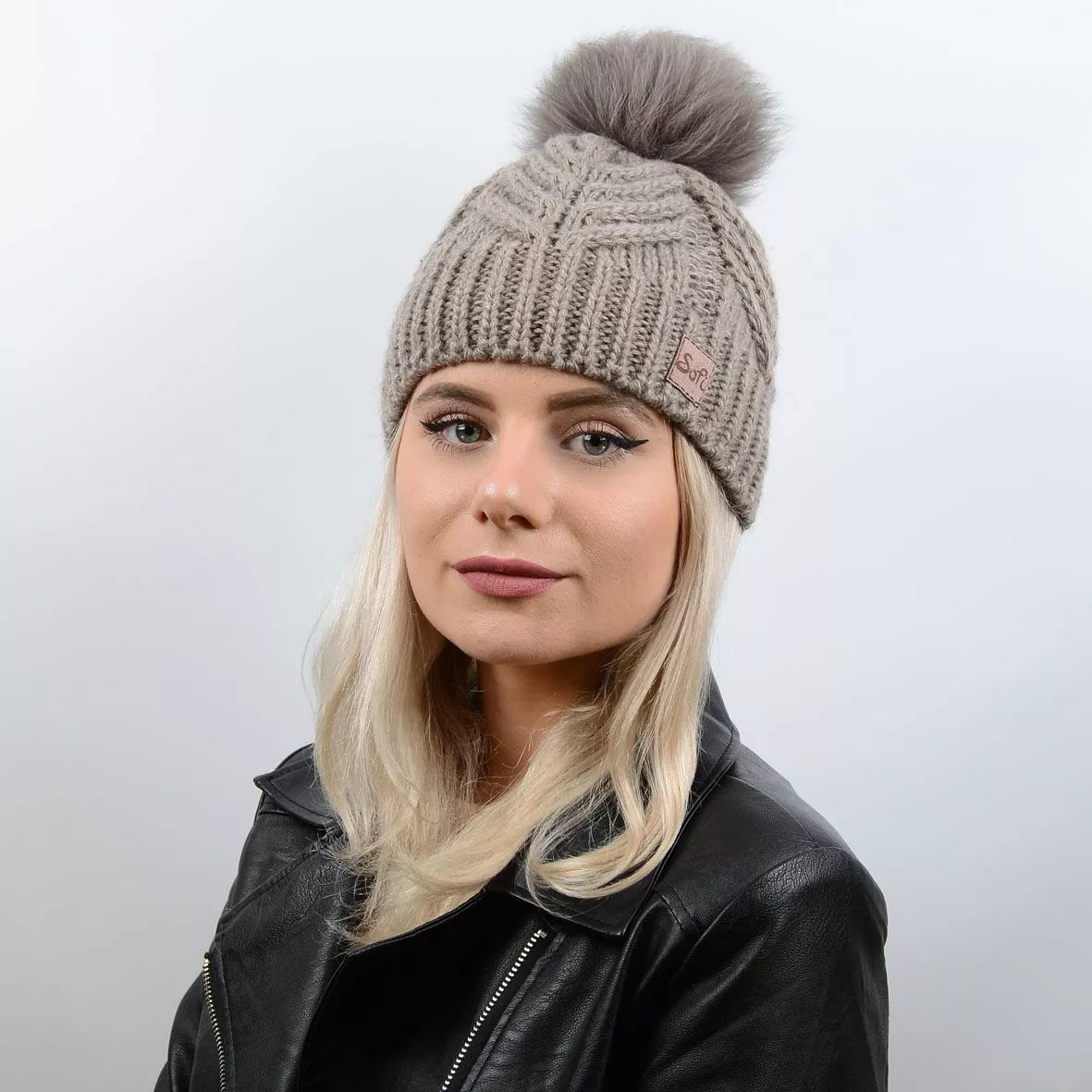 Очаровательная, слегка удлиненная шапка с натуральным меховым