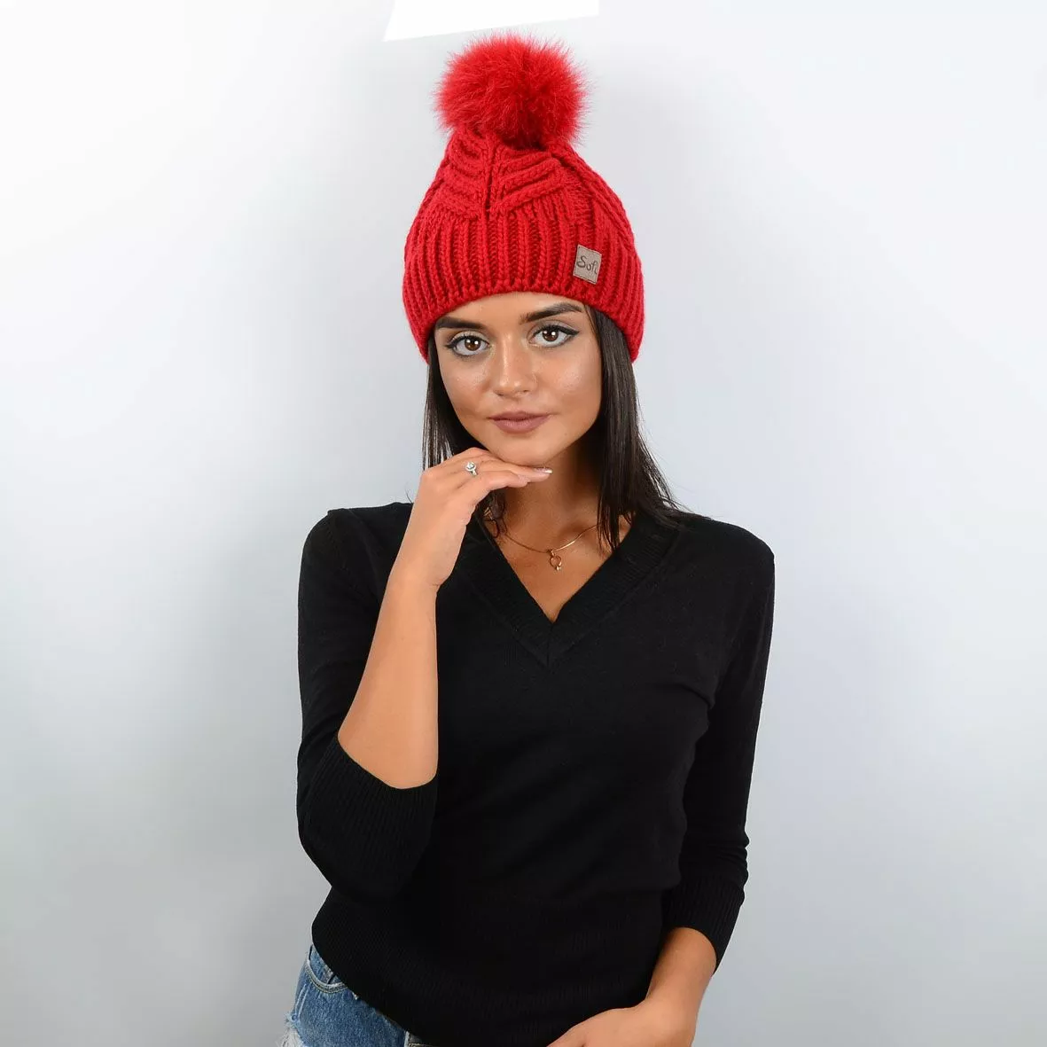 Очаровательная, слегка удлиненная шапка с натуральным меховым