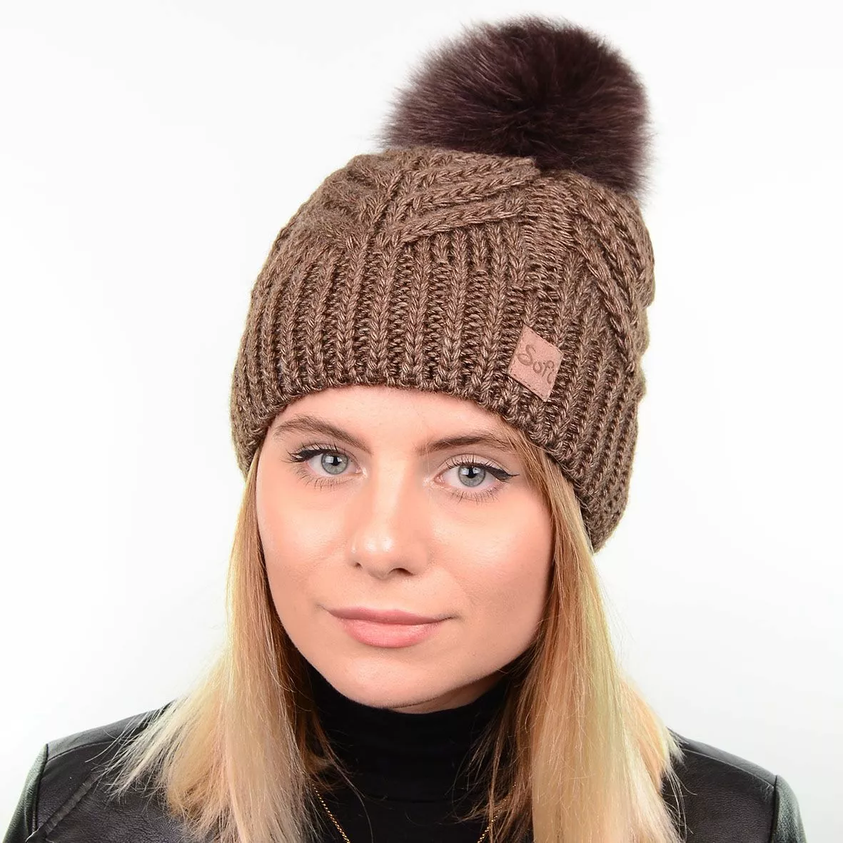 Очаровательная, слегка удлиненная шапка с натуральным меховым
