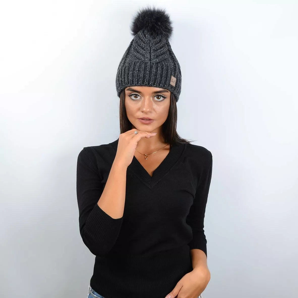 Очаровательная, слегка удлиненная шапка с натуральным меховым