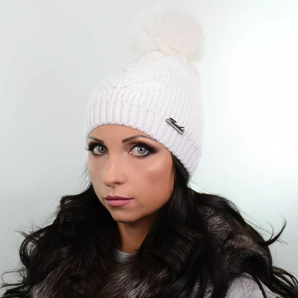 Модная зимняя шапка с натуральным меховым помпоном - смотрится