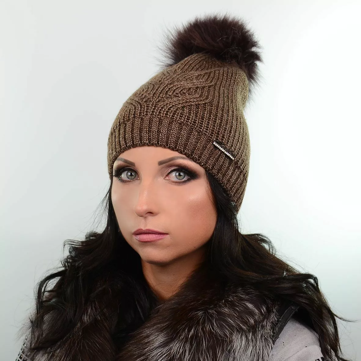 Модная зимняя шапка с натуральным меховым помпоном - смотрится