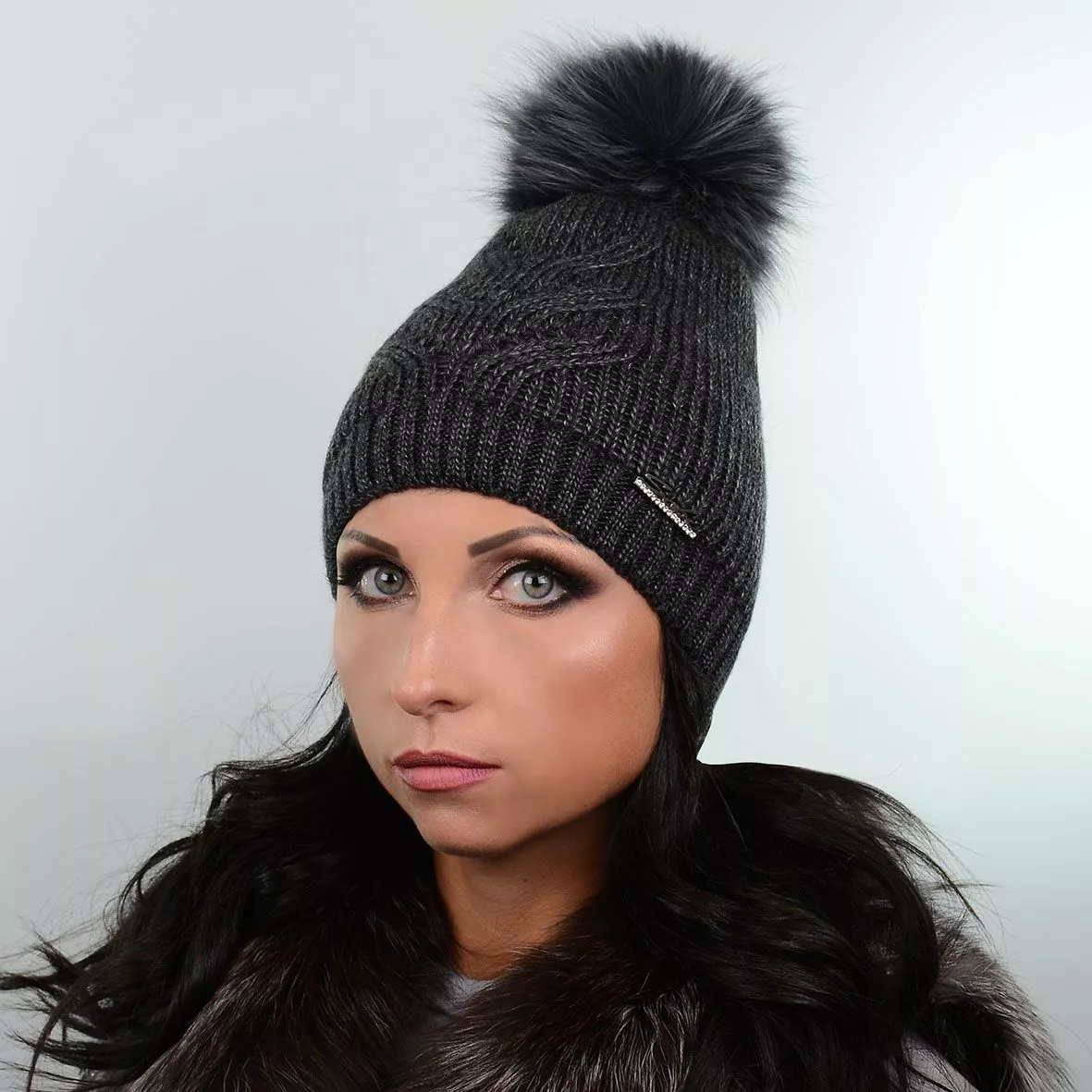 Модная зимняя шапка с натуральным меховым помпоном - смотрится