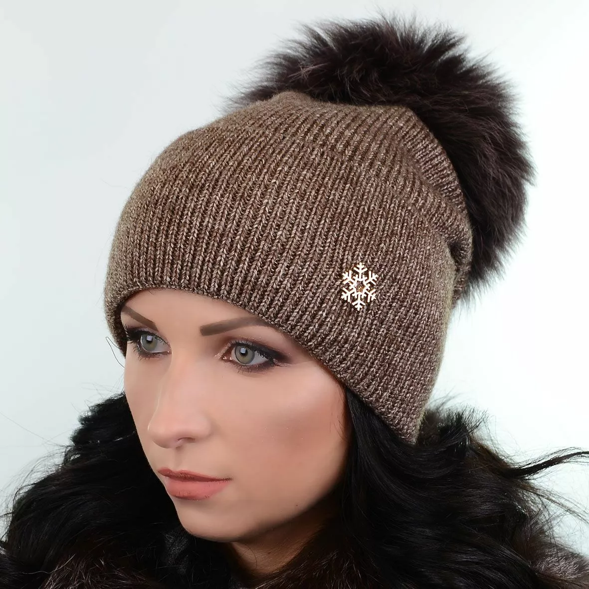 Зимняя шапка с меховым помпоном - смотрится красиво и стильно.