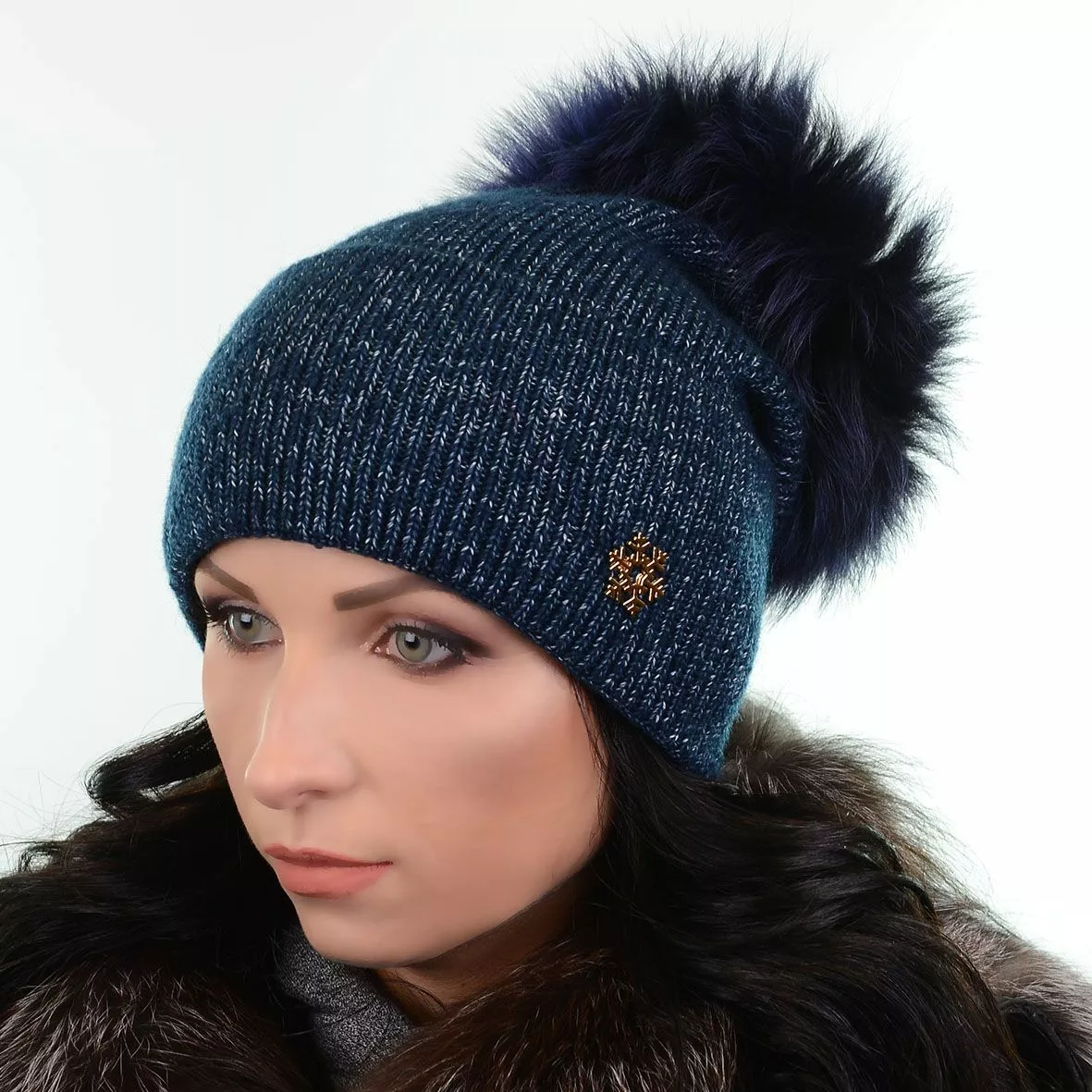 Зимняя шапка с меховым помпоном - смотрится красиво и стильно.