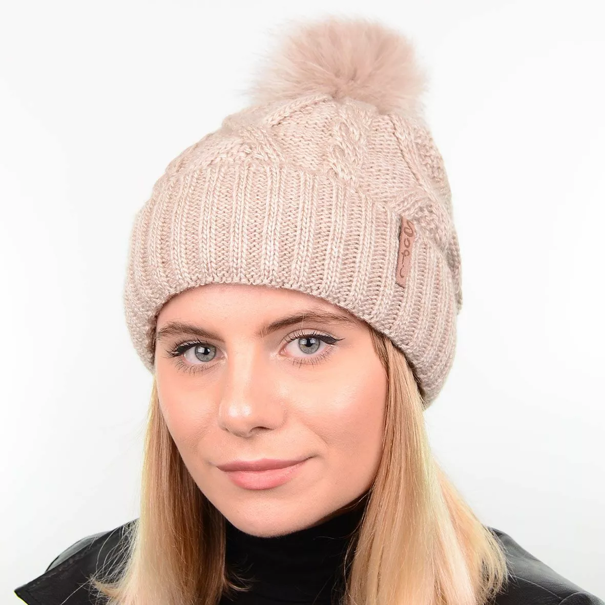 Модная зимняя шапка с натуральным меховым помпоном - смотрится