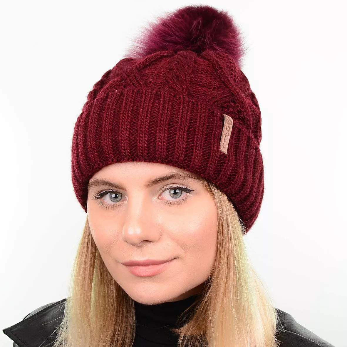 Модная зимняя шапка с натуральным меховым помпоном - смотрится