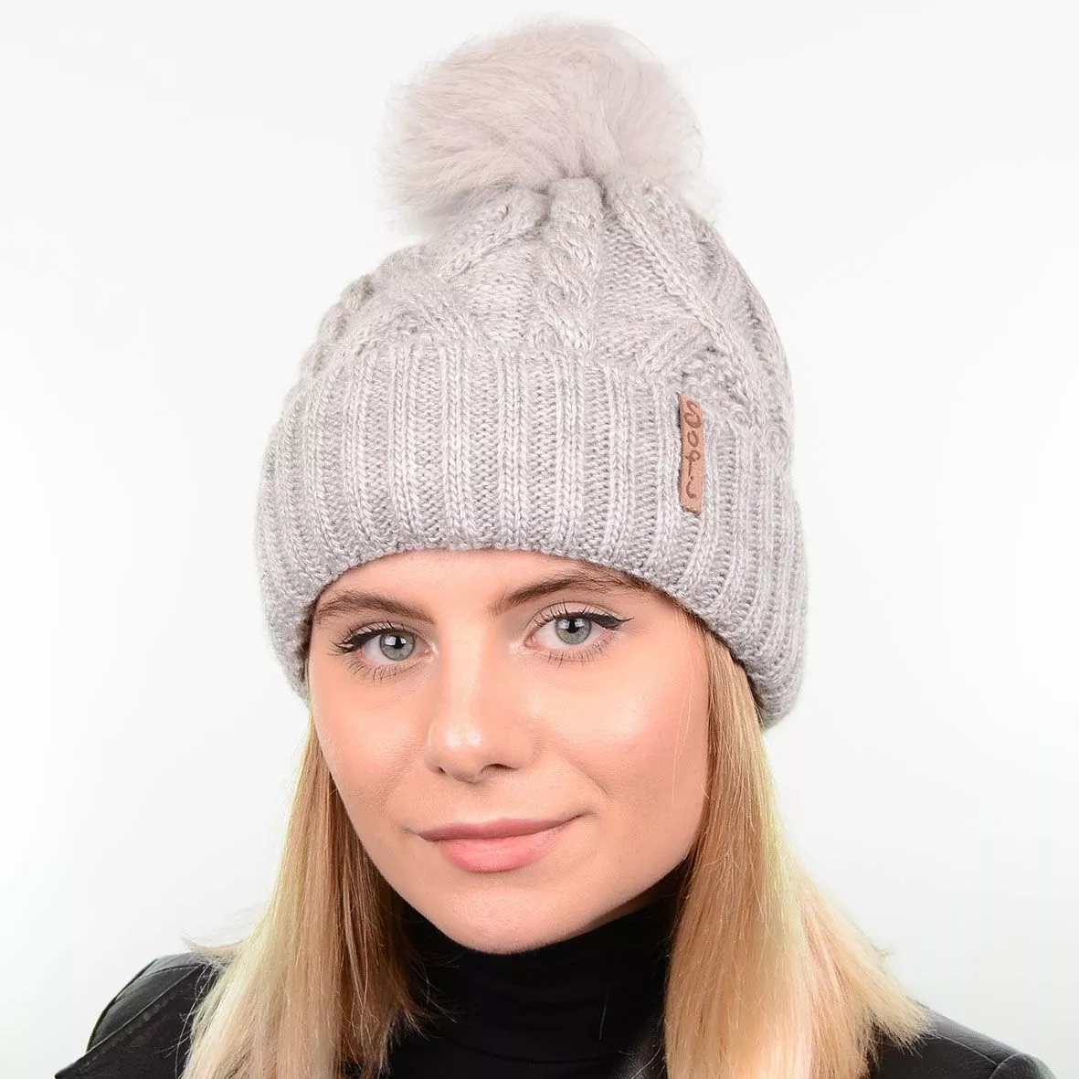 Модная зимняя шапка с натуральным меховым помпоном - смотрится