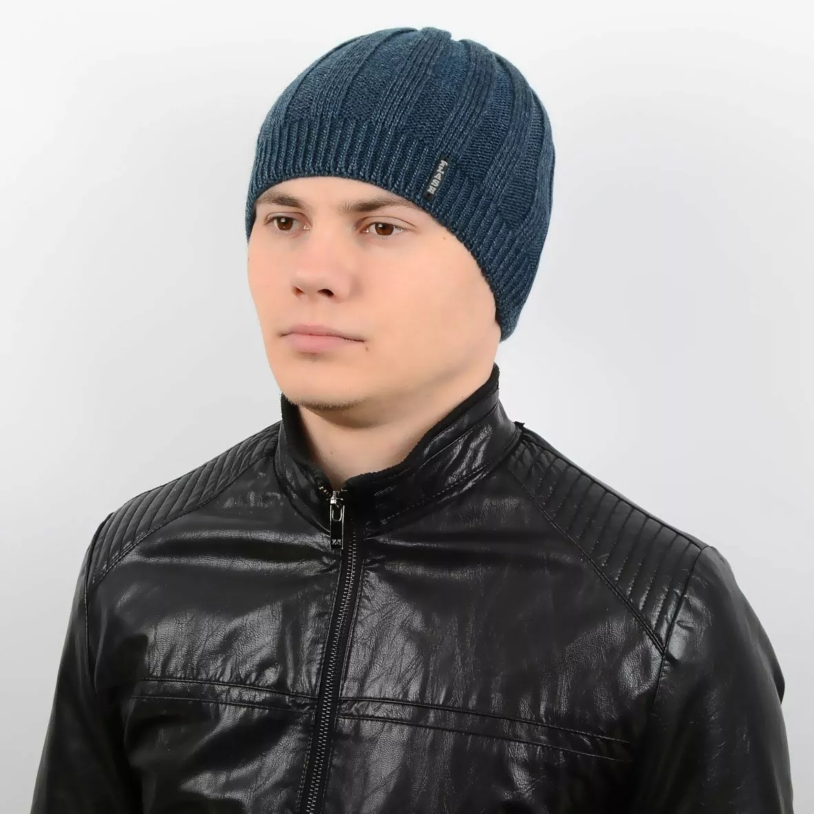 Стильная мужская вязаная шапка, в состав которой входит шерсть с