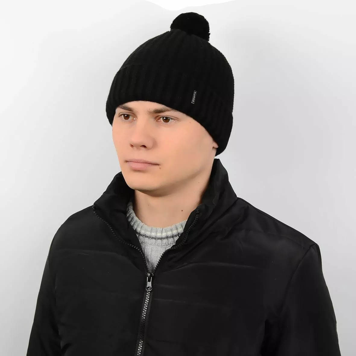 Стильная мужская вязаная шапка, в состав которой входит шерсть с