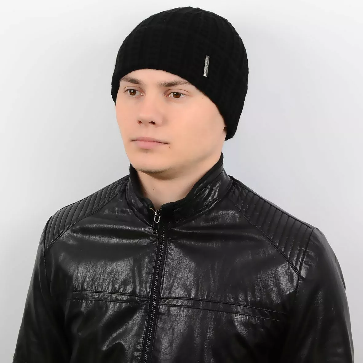 Стильная мужская вязаная шапка, в состав которой входит шерсть с