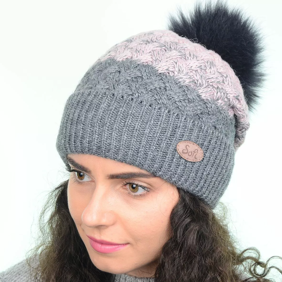 Модная зимняя шапка с меховым помпоном - смотрится красиво и