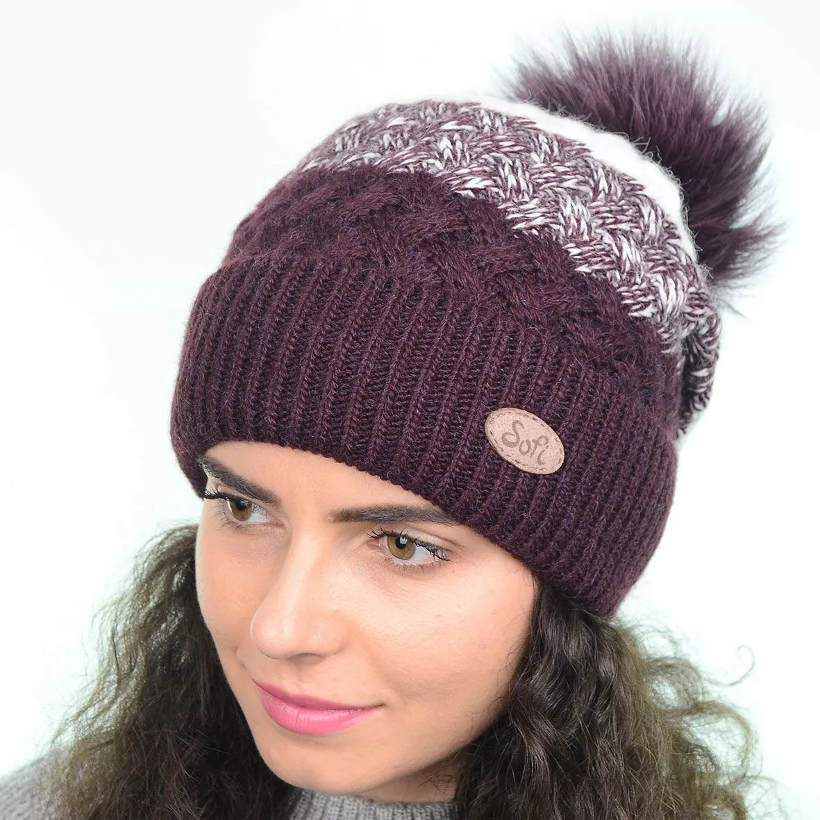 Модная зимняя шапка с меховым помпоном - смотрится красиво и