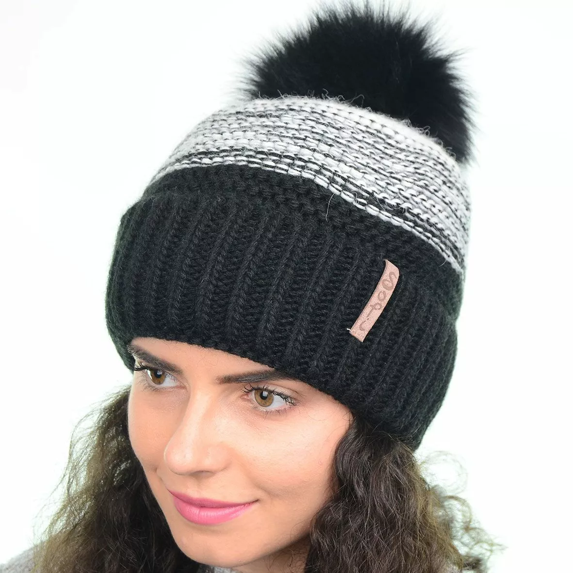 Модная зимняя шапка с меховым помпоном - смотрится красиво и