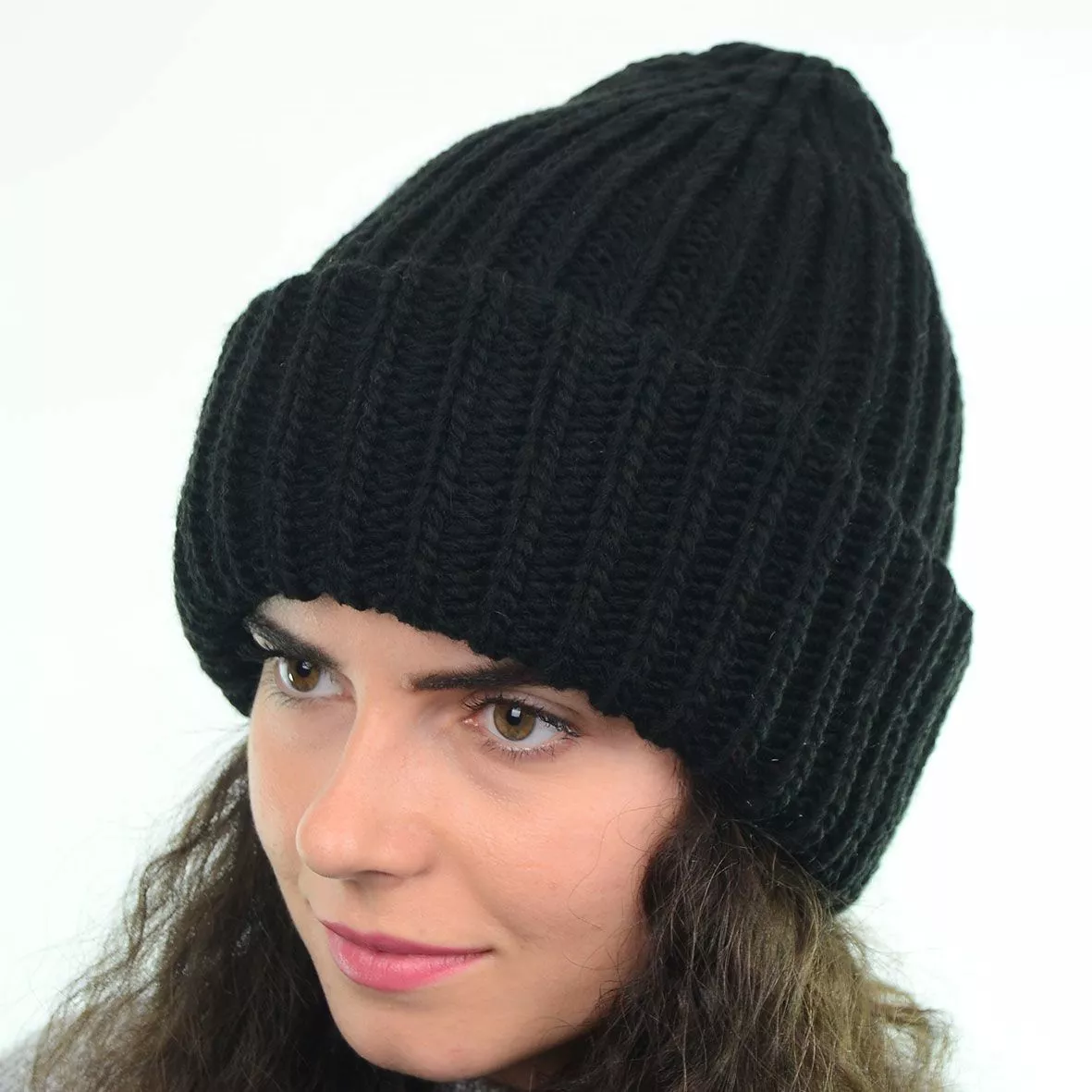 Зимняя женская шапка выполнена крупкой вязкой, имеет двойной
