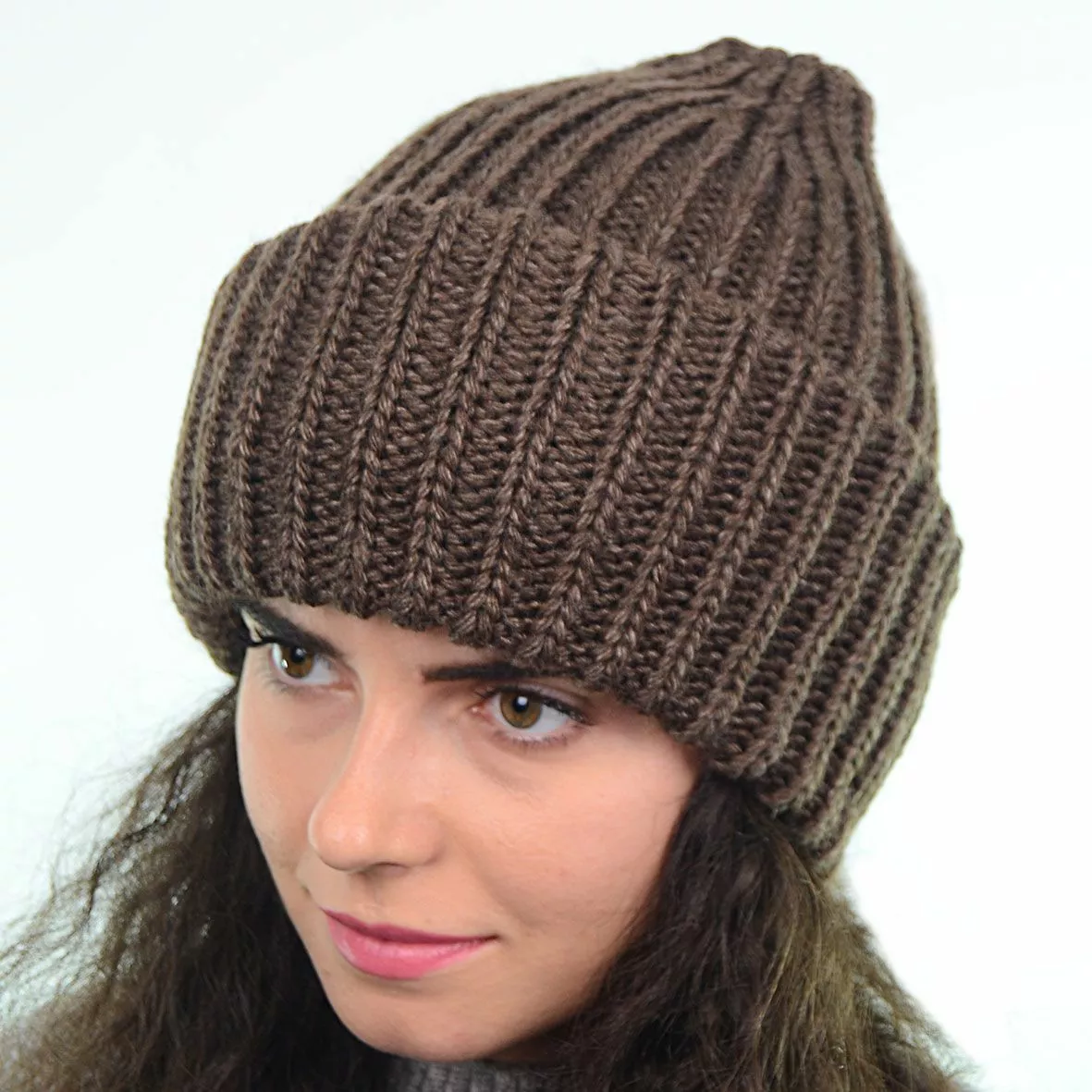 Зимняя женская шапка выполнена крупкой вязкой, имеет двойной