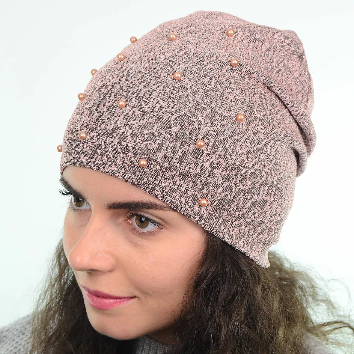 Стильная двухслойная трикотажная шапка – непременно подарит привлекательный вид своей владелице. Модель имеет удлиненную форму, мягкая, хорошо тянется, устойчива к износу. Головной убор декорирован бусинками, плотно облегает голову, надежно защищает её от ветра и холода, а так же придает образу оригинальность и особый шарм.