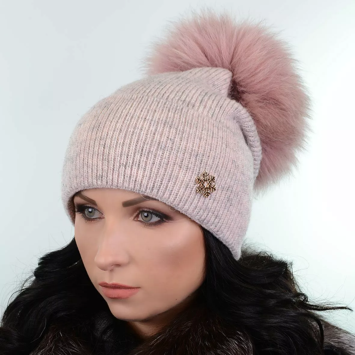 Зимняя шапка с меховым помпоном - смотрится красиво и стильно.