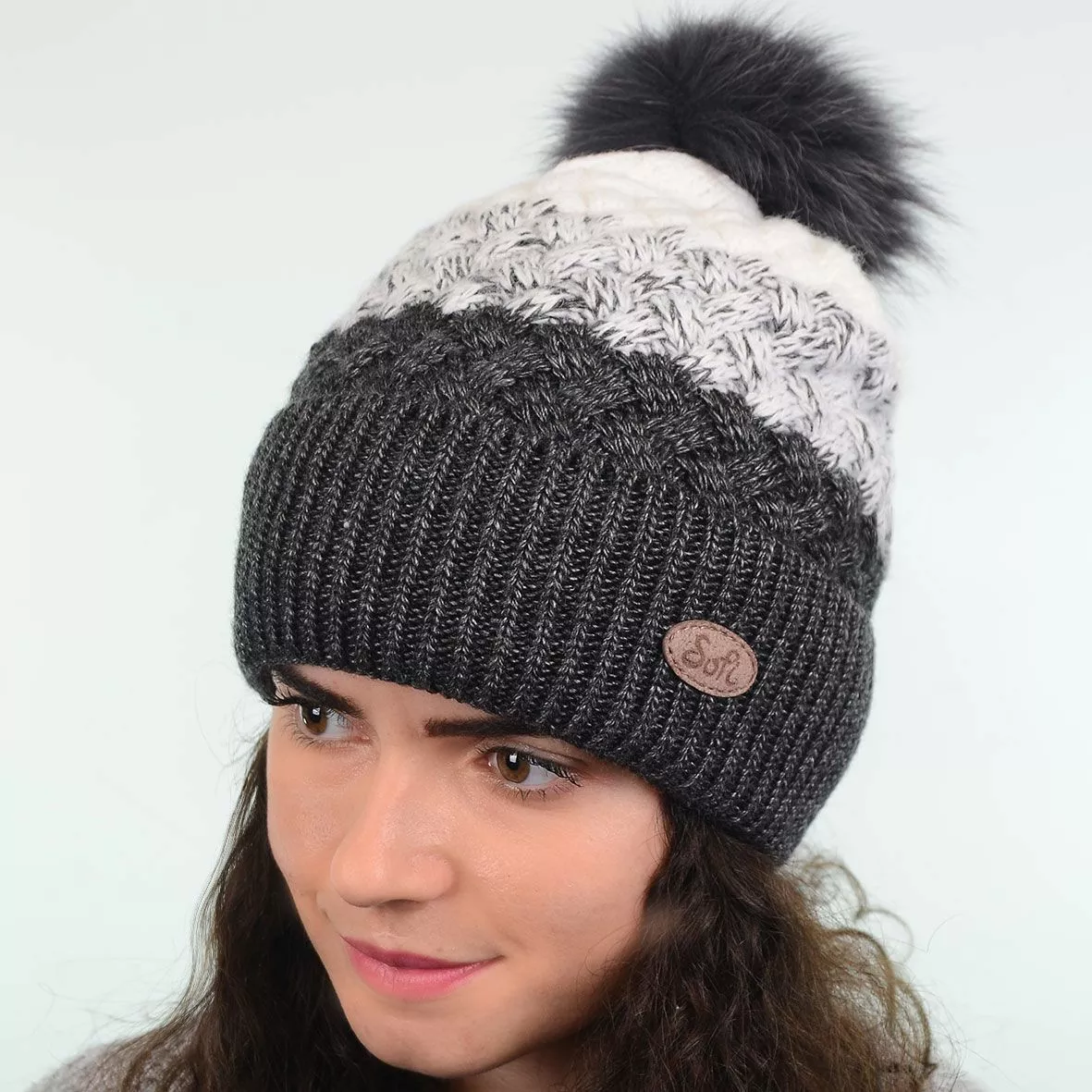 Модная зимняя шапка с меховым помпоном - смотрится красиво и