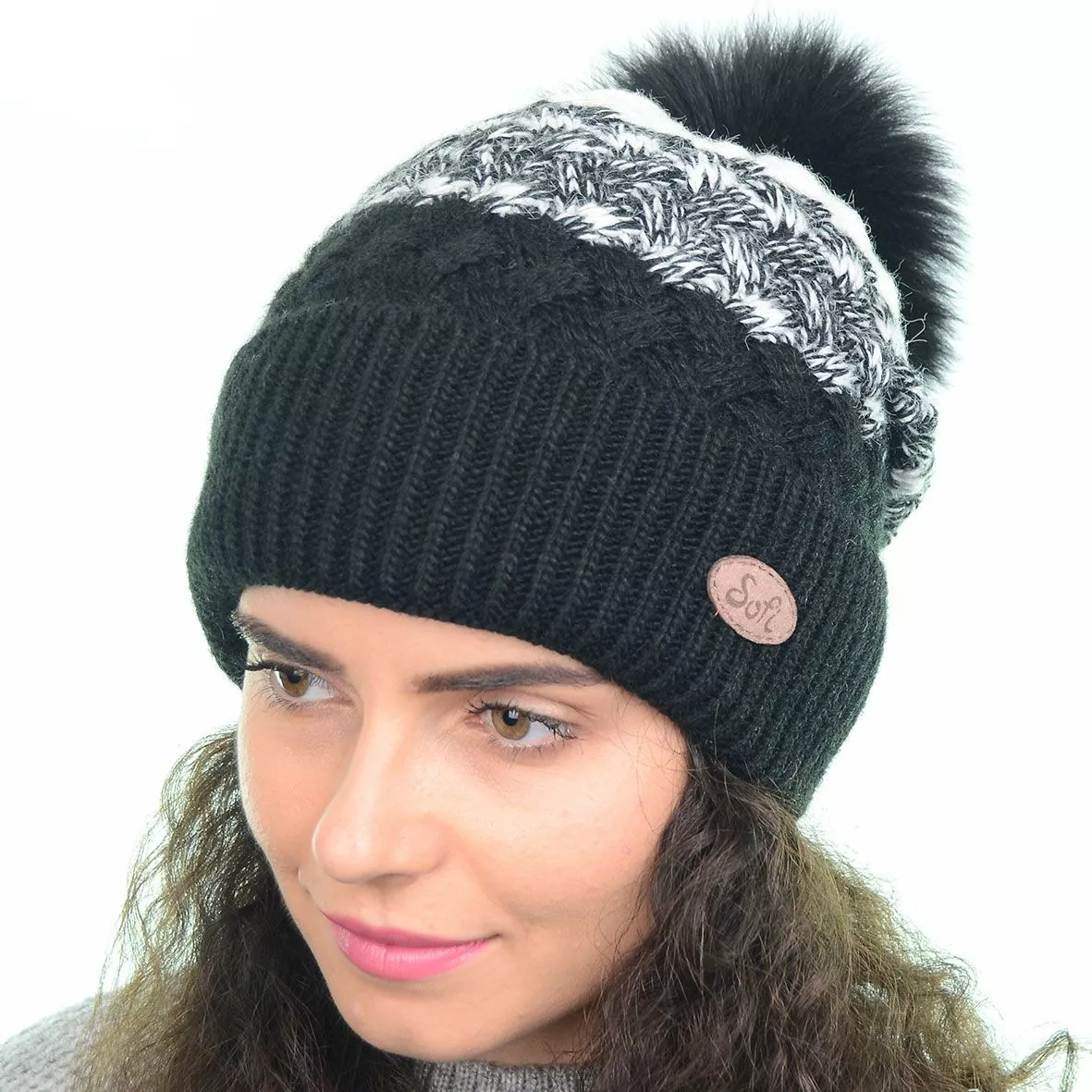 Модная зимняя шапка с меховым помпоном - смотрится красиво и