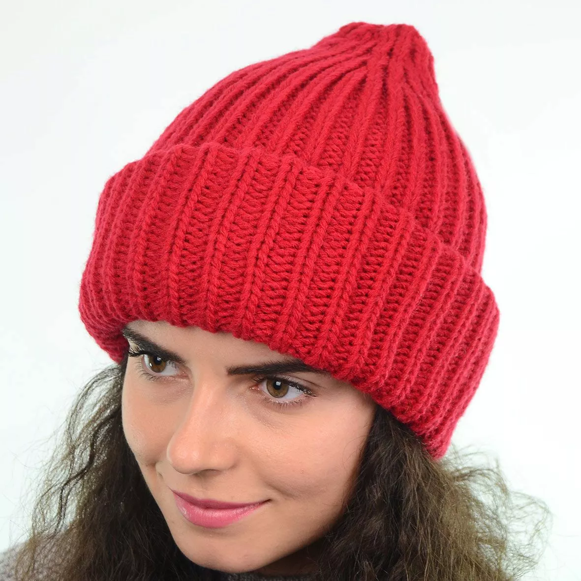 Зимняя женская шапка выполнена крупкой вязкой, имеет двойной