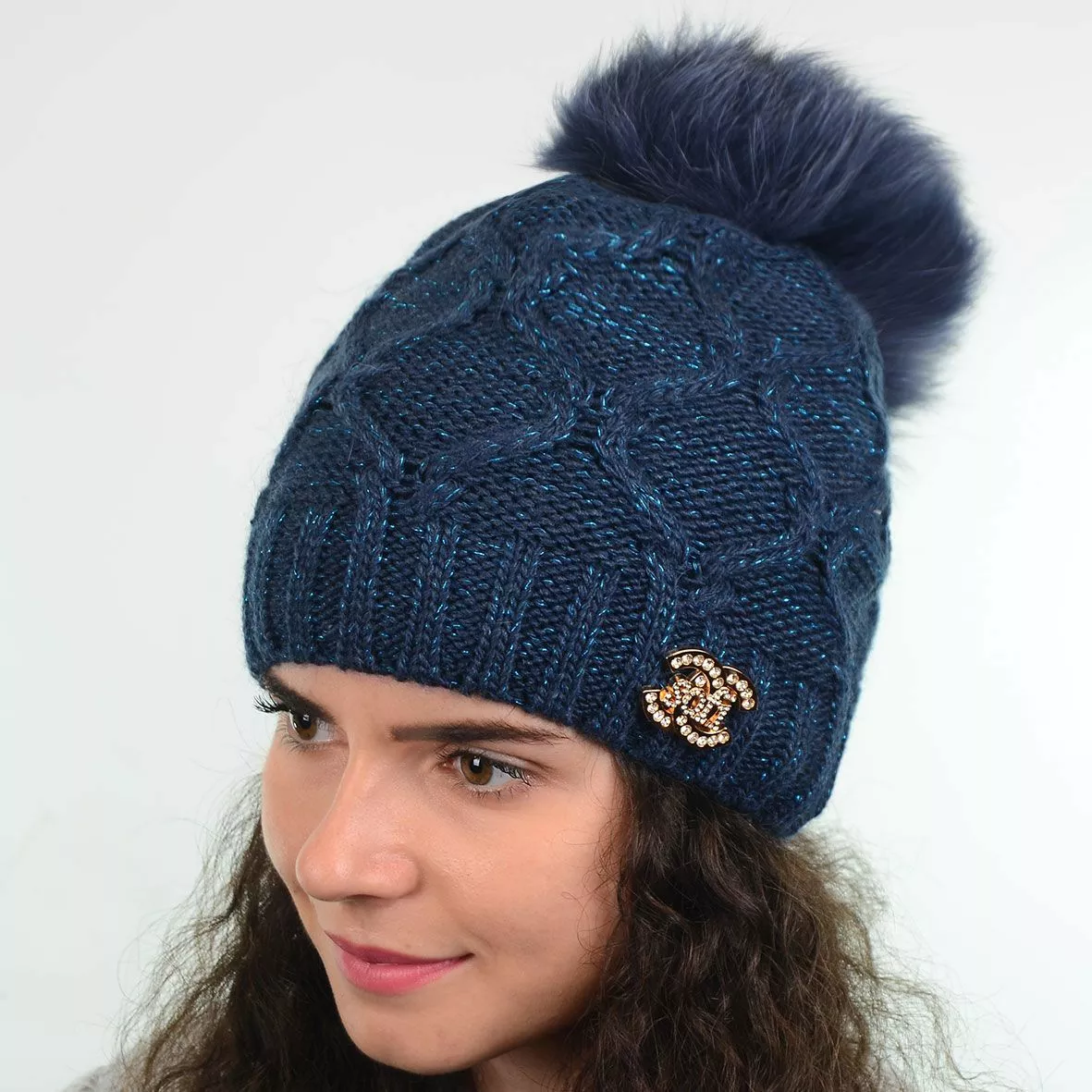 Модная зимняя шапка с меховым помпоном - смотрится красиво и