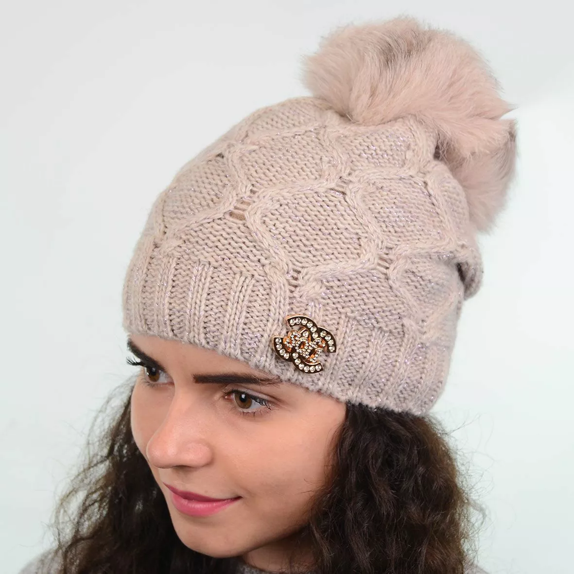 Модная зимняя шапка с меховым помпоном - смотрится красиво и