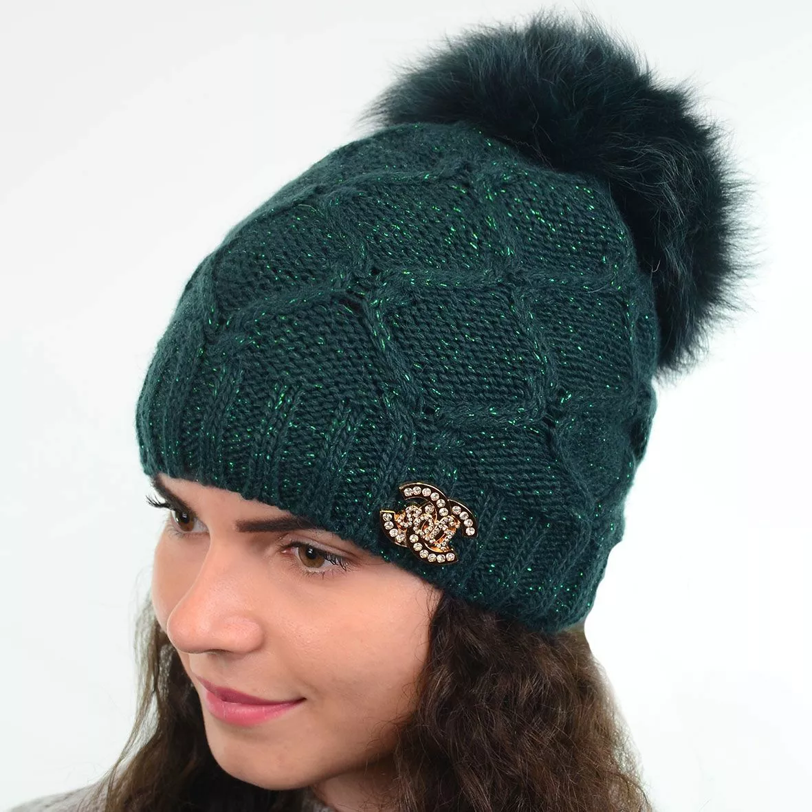 Модная зимняя шапка с меховым помпоном - смотрится красиво и
