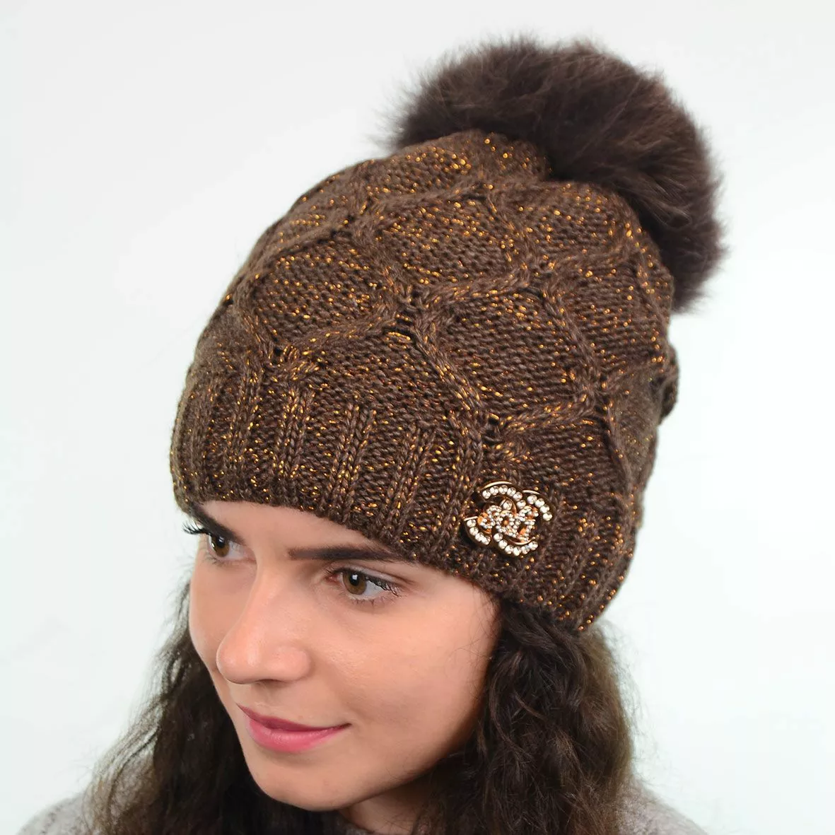 Модная зимняя шапка с меховым помпоном - смотрится красиво и