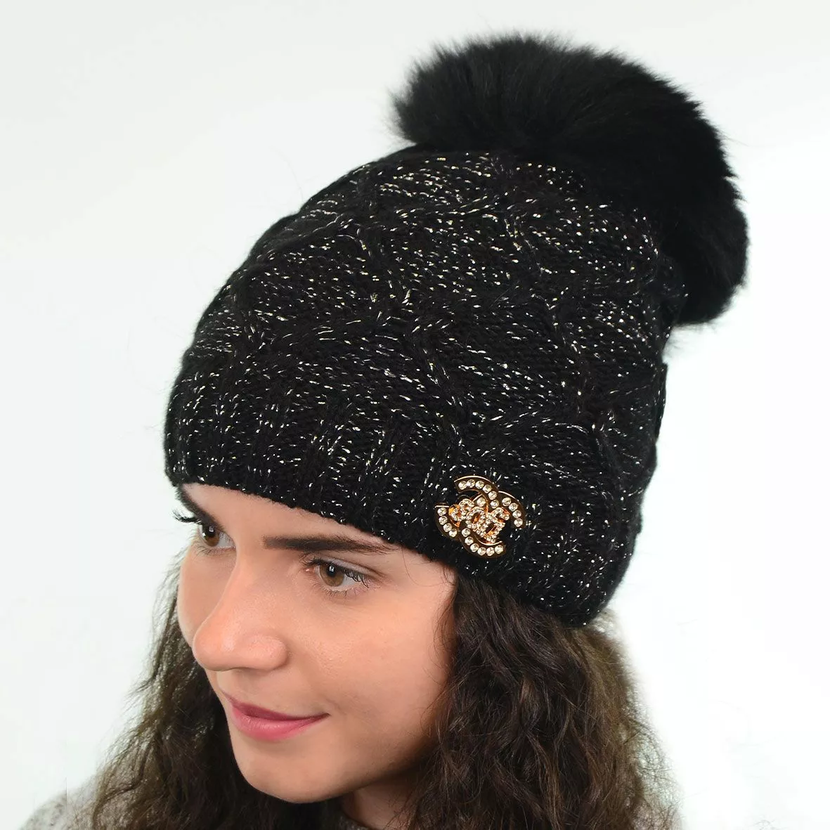 Модная зимняя шапка с меховым помпоном - смотрится красиво и