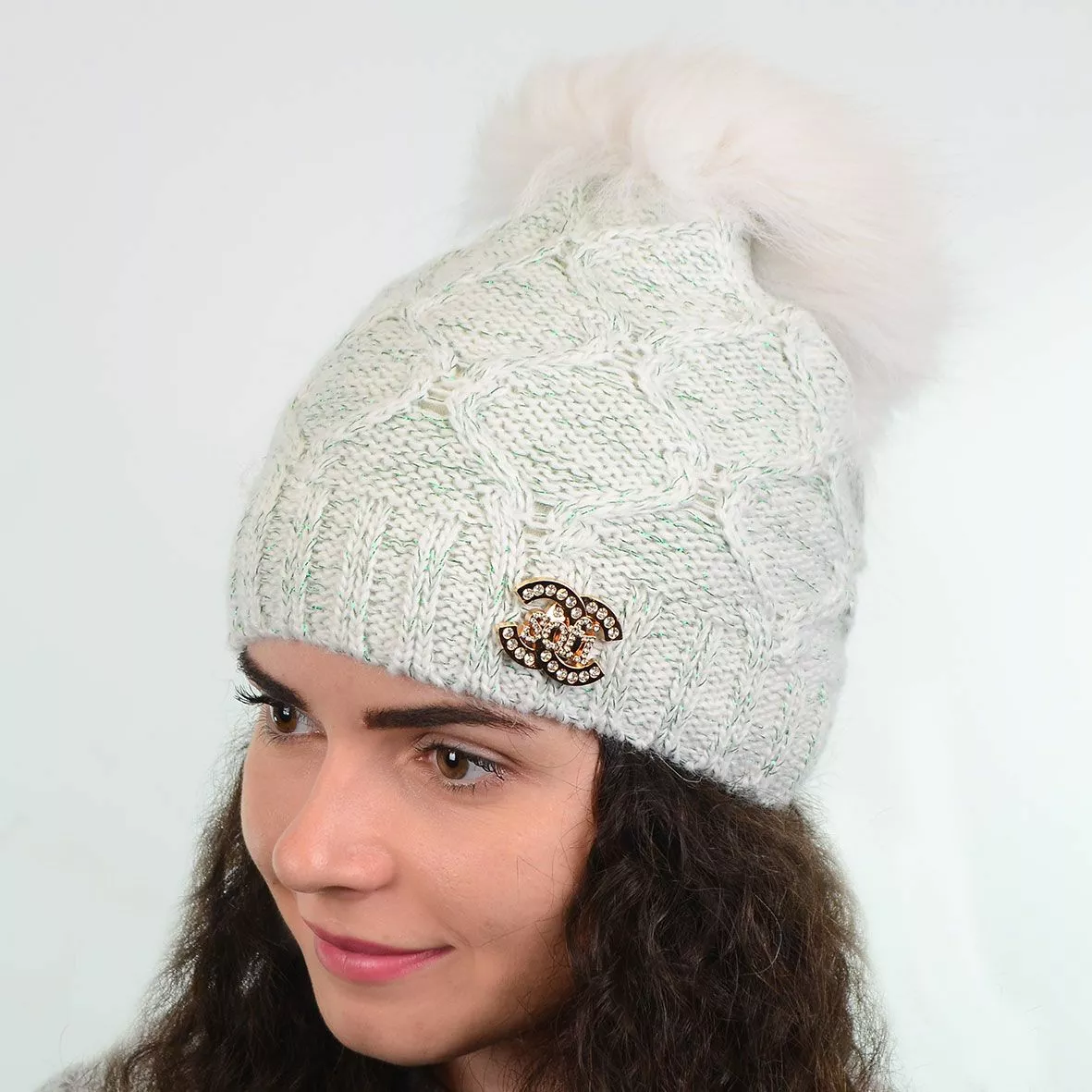 Модная зимняя шапка с меховым помпоном - смотрится красиво и