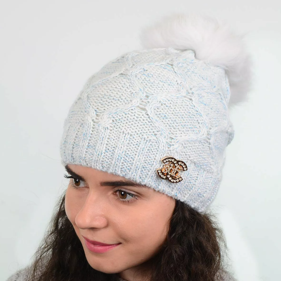 Модная зимняя шапка с меховым помпоном - смотрится красиво и