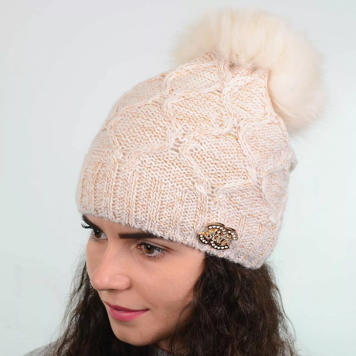 Модная зимняя шапка с меховым помпоном - смотрится красиво и