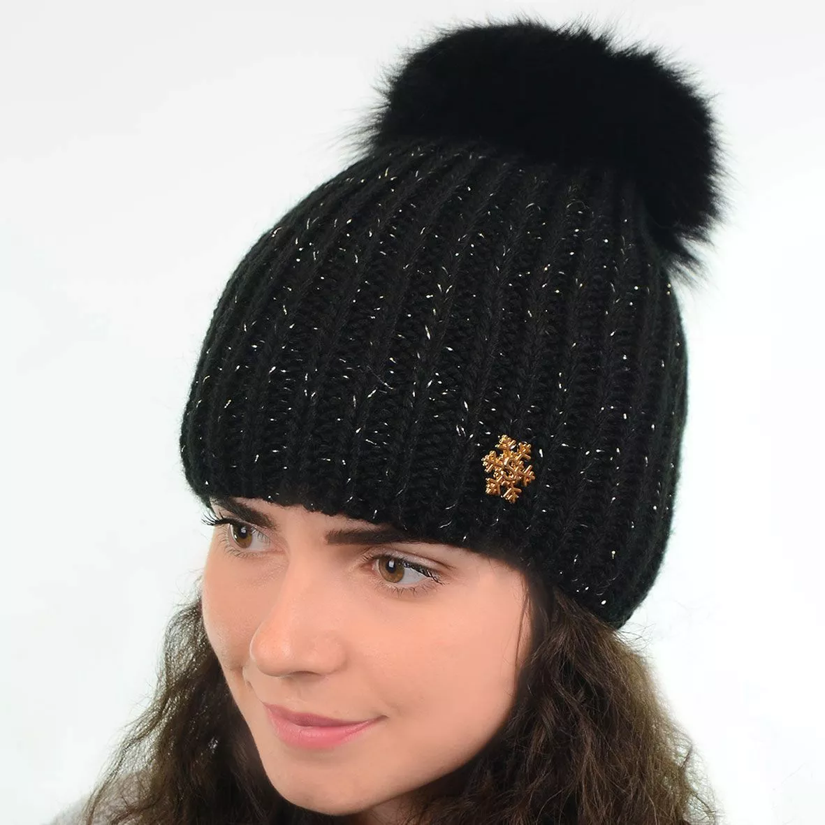 Модная зимняя шапка с меховым помпоном - смотрится красиво и