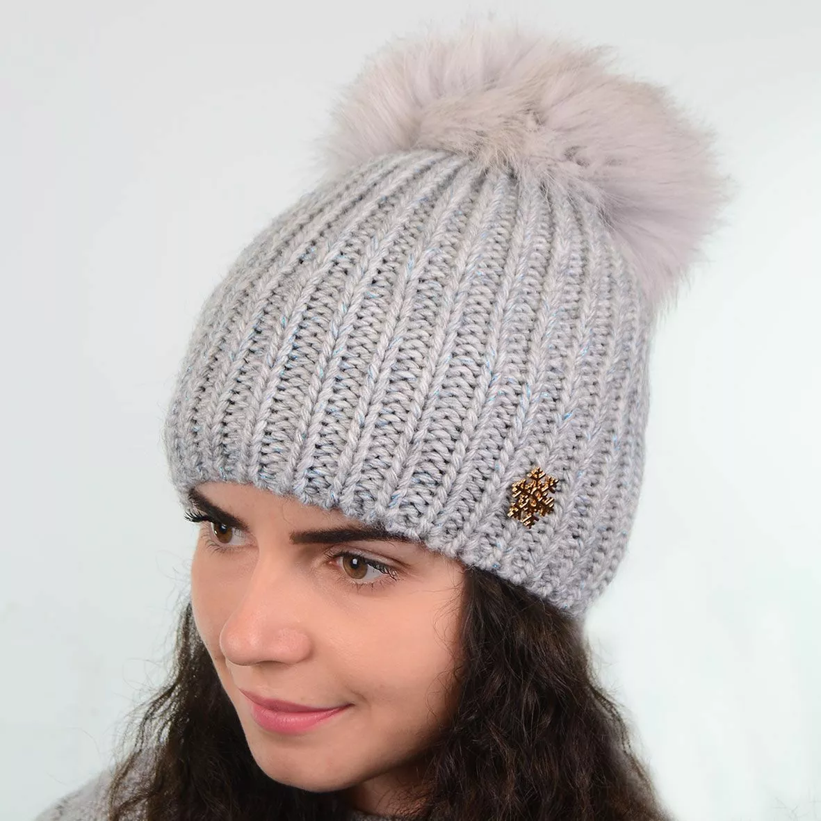 Модная зимняя шапка с меховым помпоном - смотрится красиво и